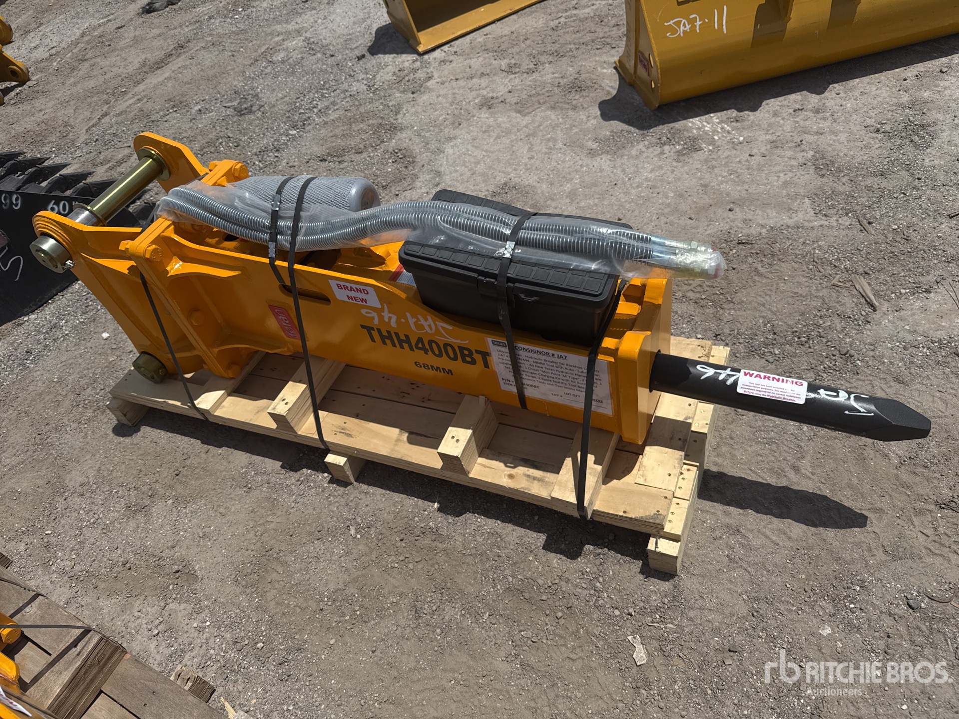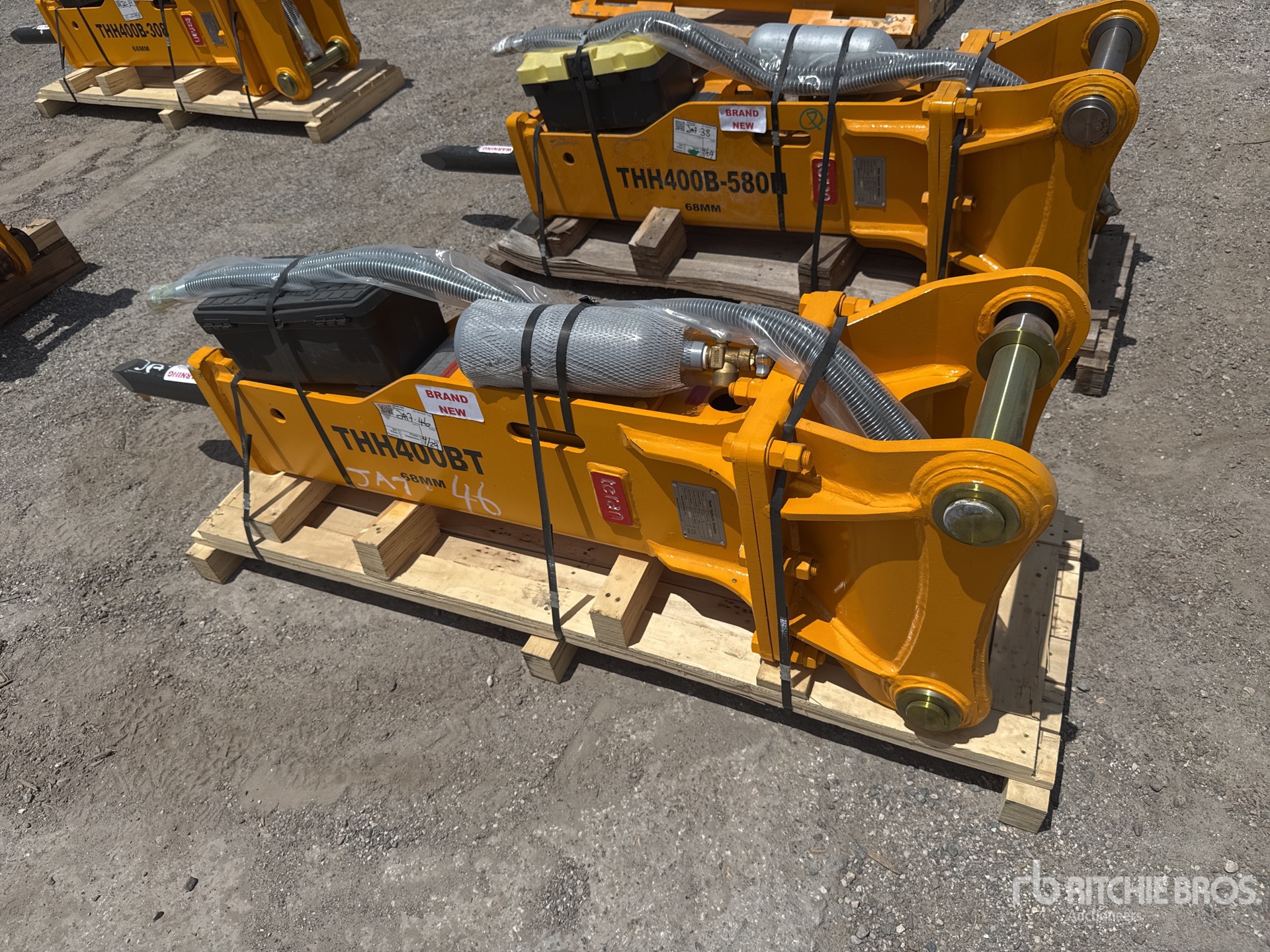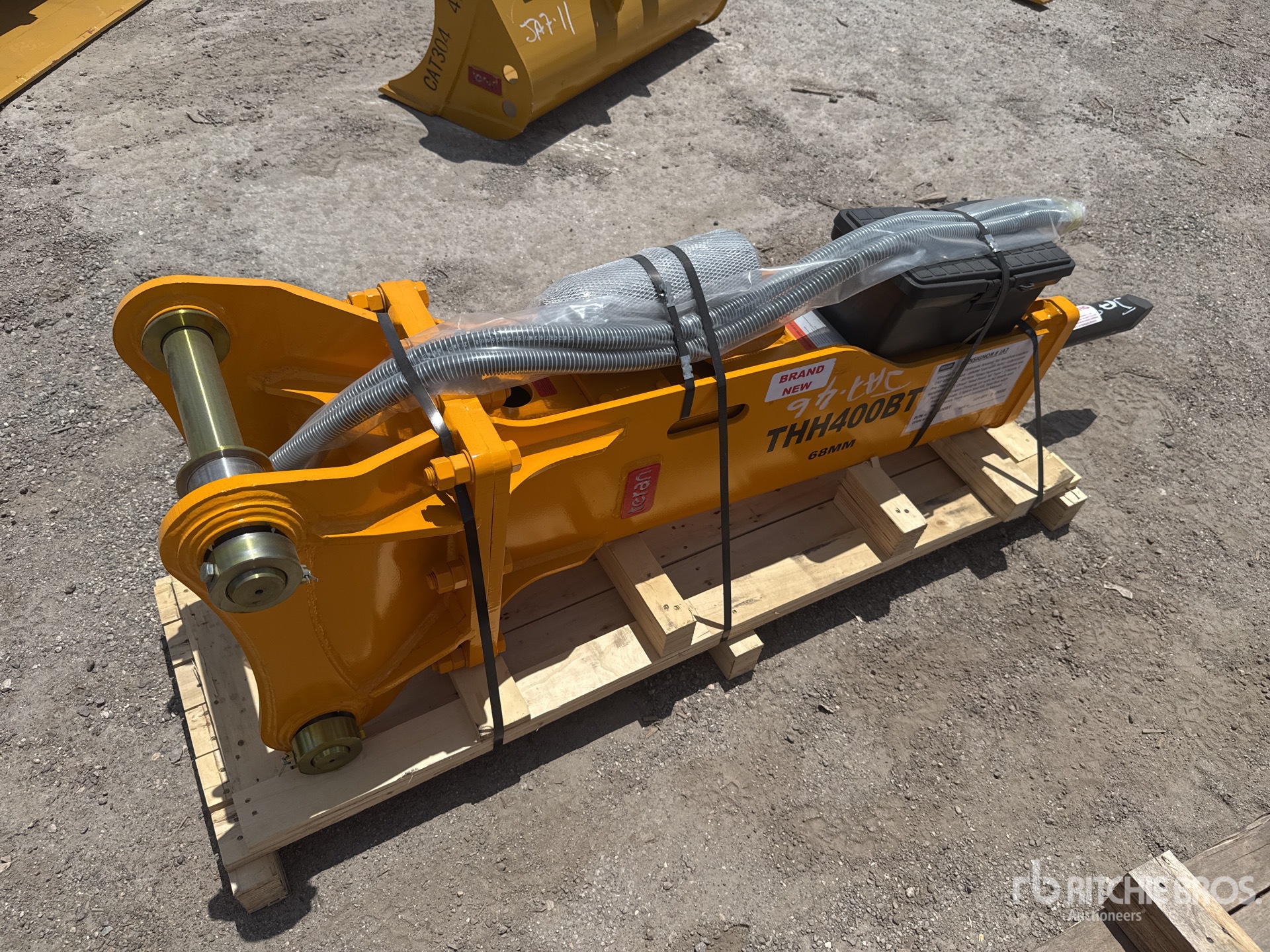355 mm Center of Pin Boss to Center of Pin Boss, 254 mm Inside to Inside Pin Boss Spacing, For Backhoe Loaders CAT 416, 428, 444 -68mm Tool With Auto - Lubrication Pre-Disposition - All New Teran Hydraulic Hammers are supplied with 1 Chisel Moil Point M Type, 2 Hoses, 1 Set of N2 Nitrogen Charging Kit with N2 Bottle and Pressure Gauge, 1 Spare Seal Kit, Tool Box with Maintenance Tools and Operations Manual