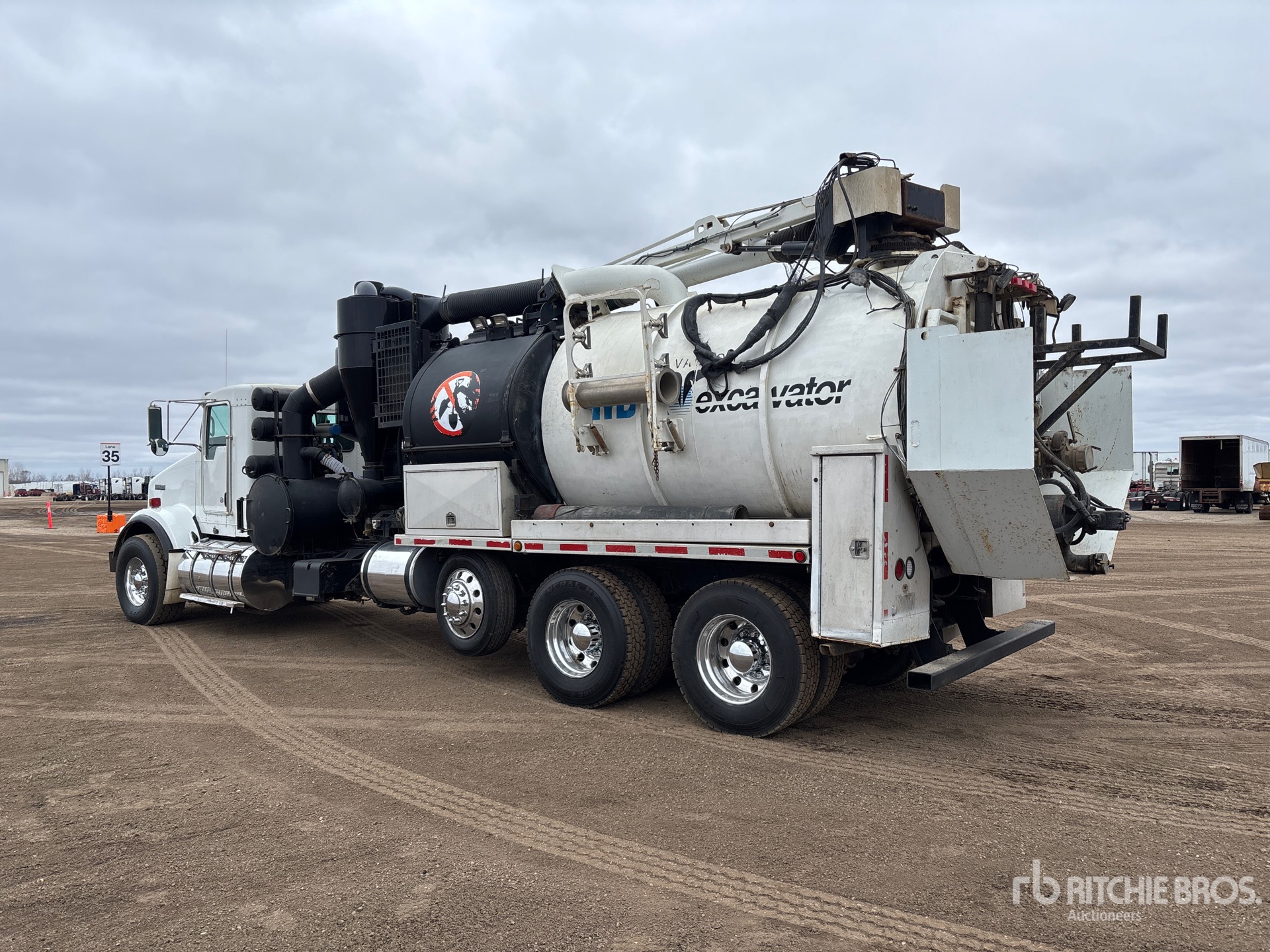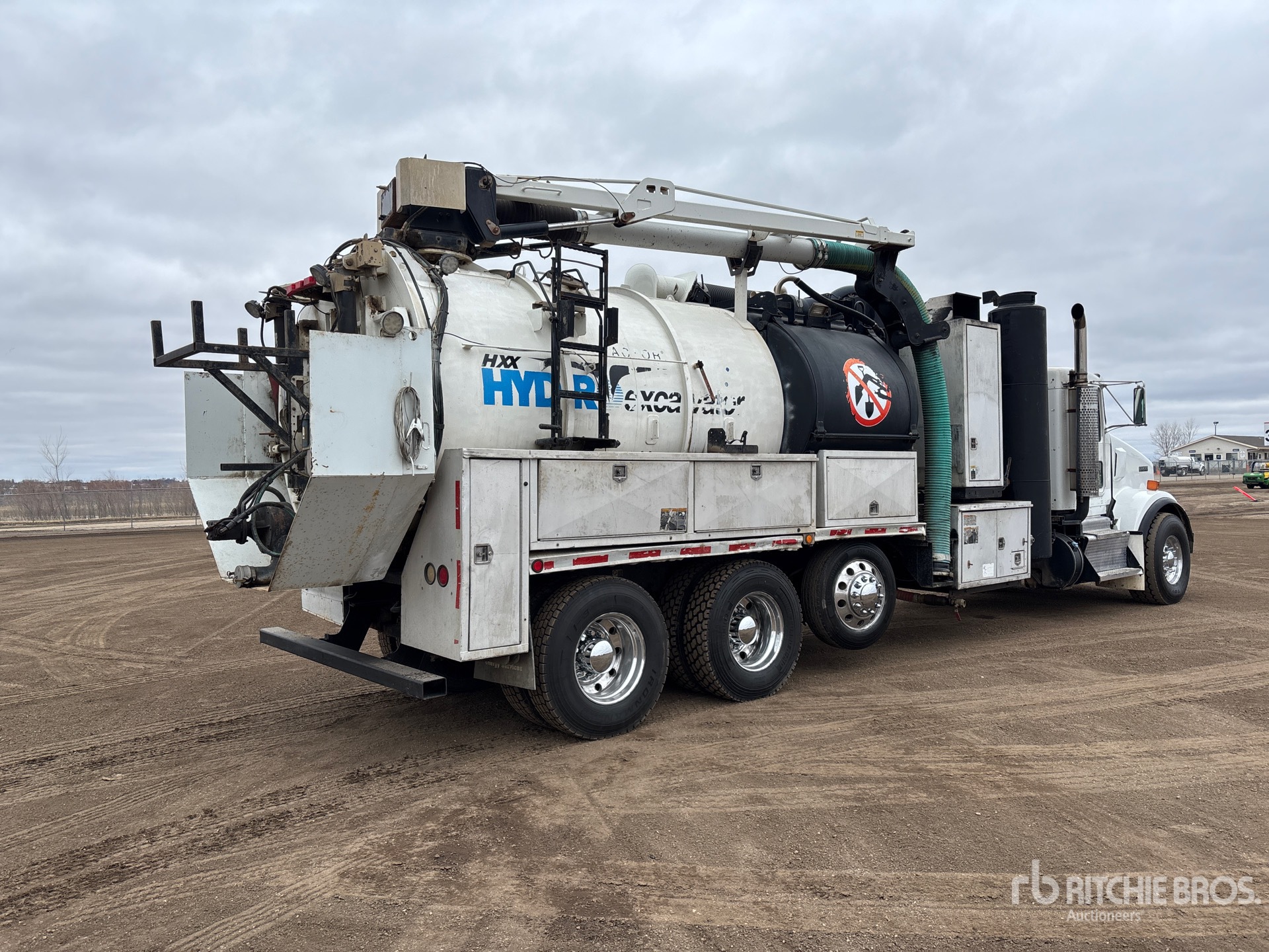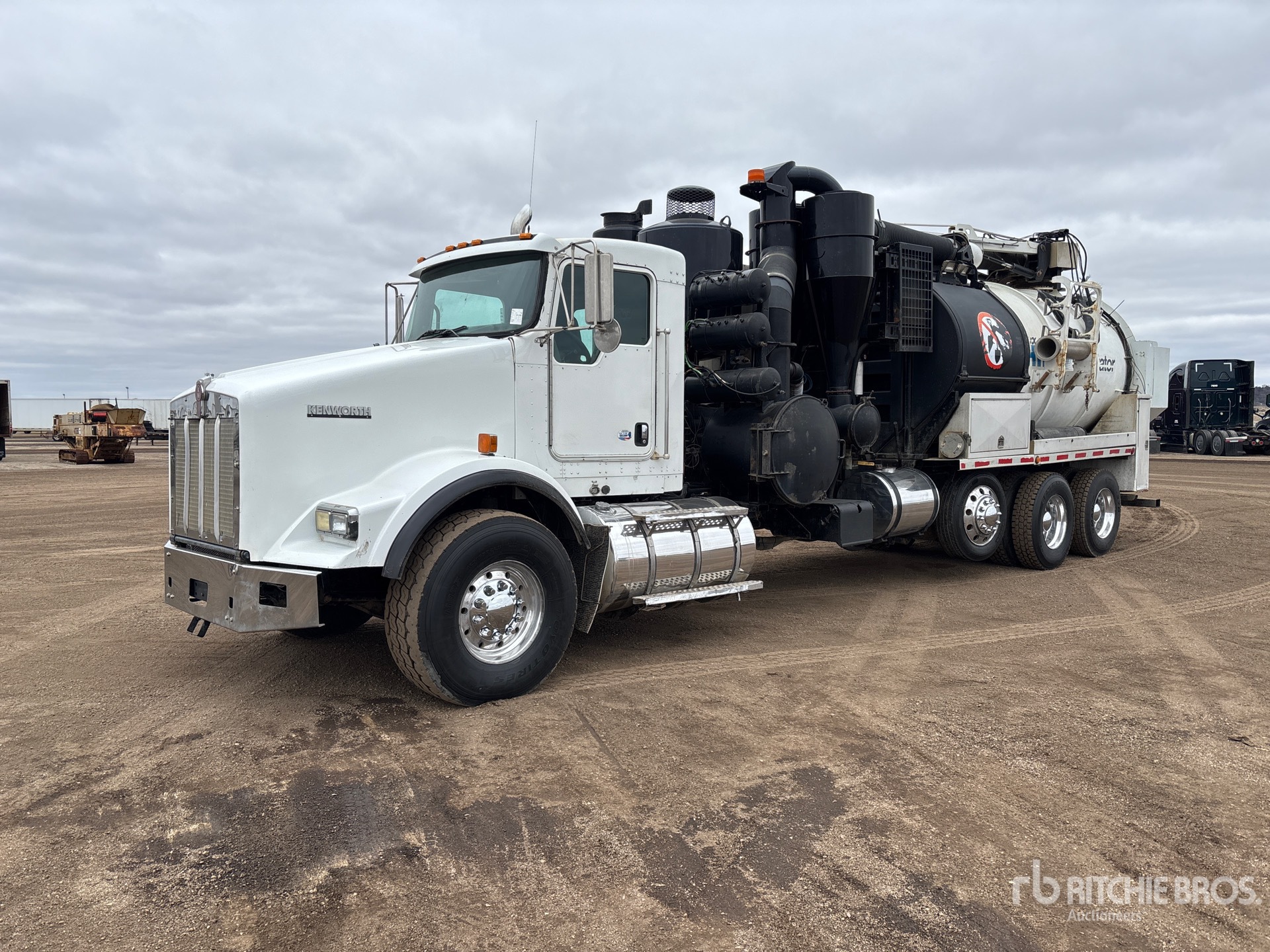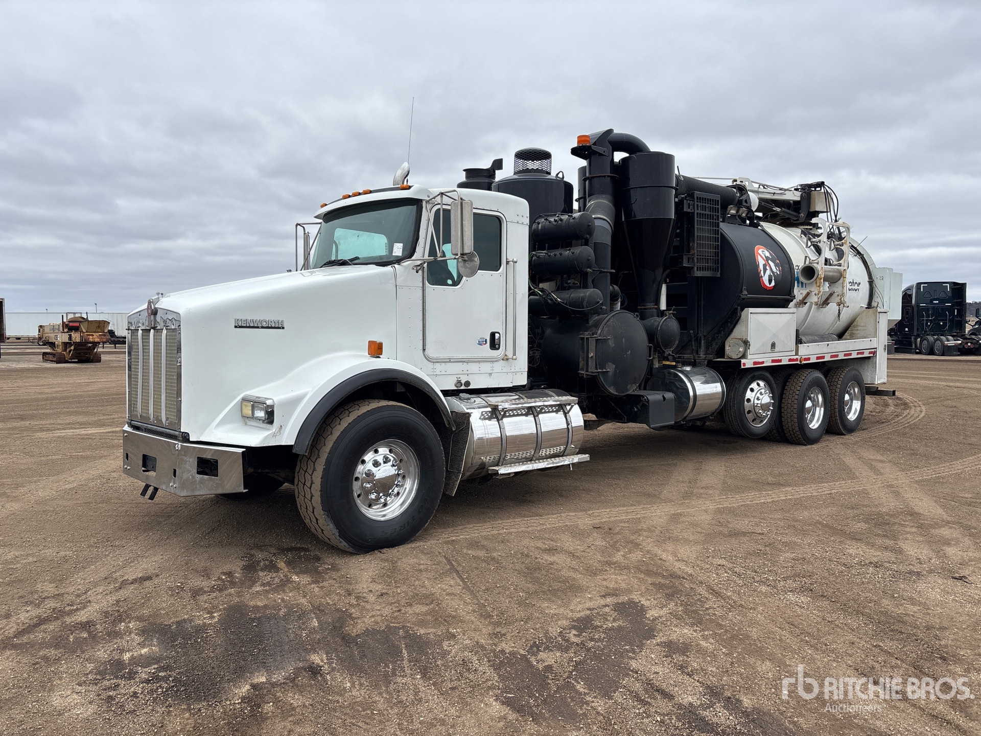 Cummins ISX 6 Cylinder 15 L Diesel 485 hp Engine, 2009 US EPA Label, 21065 Engine hrs, Eaton Fuller FRO-16210C 10-Speed Manual Transmission, 20000 lb Front Axle, 46000 lb Rears, 78350 lb GVWR, Aluminum Wheels, 425/65R22.5 Front Tires, 11R22.5 Rear Tires, Steerable Air Lift Pusher Axle, Dual Steering Boxes, Double Frame, Hendrickson Spring over Walking Beam Suspension, 310 in Wheelbase, PTO, Wet Kit, Hydraulic Lift Tailgate, Hydraulic Tailgate Locks, 12 ft Boom, 8 in Suction Hose, PTO Driven Pump, 49978 Blower w/ 998 hrs, Cordless Remote Control